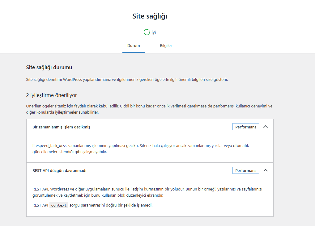Eklentileri sırasıyla devre dışı bırakmaya başladık. İlk başta DMCA Badge eklentisini devre dışı bırakmayı denedik ve bu, sorunun çözülmesini sağladı. Bu işlem sonrası, WordPress site sağlığı sayfasındaki REST API hatası kayboldu, ayrıca Google Site Kit eklentisindeki hata mesajları da düzeldi. Sorun tamamen çözülmüş oldu.